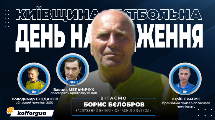 Теги: Борис Бєлобров, Василь Мельничук, Володимир Богданов, День народження, КОАФ, Київщина футбольна, Юрій Правук