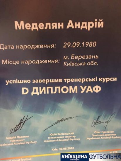 Владислав Ковальов і Андрій Меделян отримали диплом «D» і з новими знаннями, цілеспрямовано та завзято готуватимуть юну зміну для Київщини футбольної в рідній Березані. Тепер уже — в особливо важливому статусі дипломованих фахівців.