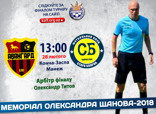 Завтра в манежі НТБ «Динамо» в Кончі-Заспі відбудеться фінальний поєдинок Меморіалу Щанова. Протистояння «Авангард» (Бзів) — ФК «Стара Боярка» проведе арбітр Другої національної ліги Олександр Титов.
