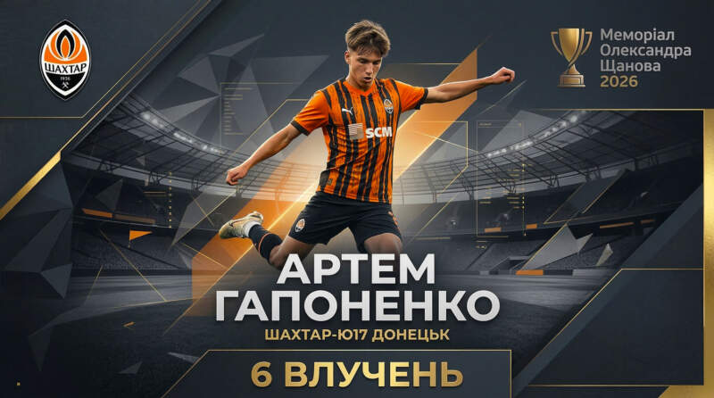 Бомбардир «Шахтаря-Ю17» — наш земляк, вихованець тренера Олександра Литвина з бориспільського «Фаворита». На Меморіалі Щанова-2026 саме він забив найперший м’яч і найпершим, єдиним і досі, награв на хет-трик.