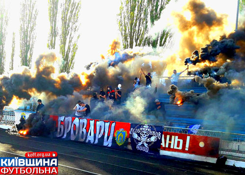 ФК «Бровари», згідно з рішенням Контрольно-дисциплінарного комітету КОФФ, очолюваним Дмитром Бірюком, має сплатити 1500 гривень штрафу за те, що група підтримки команди запалила і кинула на бігову доріжку стадіону «Спартак» піротехнічні засоби на стартовому матчі сезону.