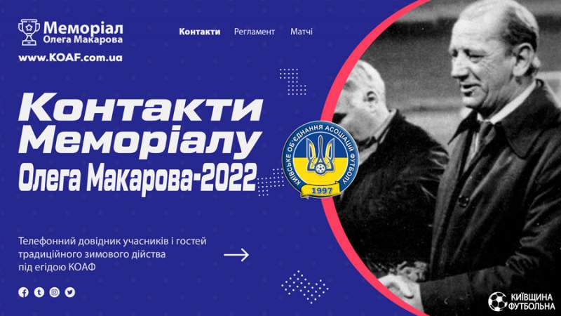 Теги: КОАФ, Київщина футбольна, Контакти, Меморіал Макарова