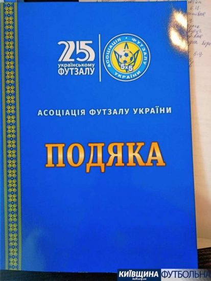 Асоціація футзалу країни відзначила спеціальними Подяками представників Київщини.