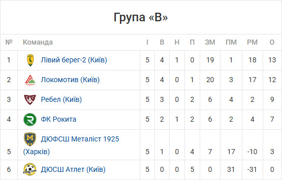 ГРУПА «В». ДЮФСШ МЕТАЛІСТ 1925 (Харків) — ДЮСШ АТЛЕТ (Київ) — 5:0 (Нікітін, 34, 52, Борисенко, 43, Криштопа, 44, Майкл, 88, у свої ворота).