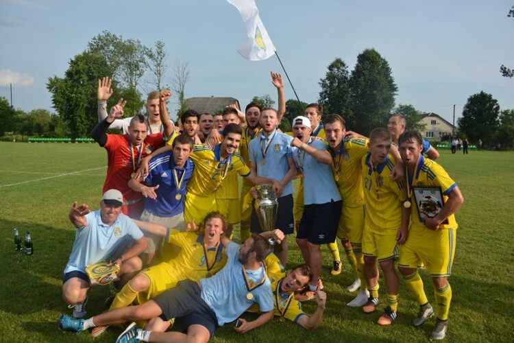 Одинадцять футболістів Київщини, що двічі вигравали Кубок України серед аматорів.
