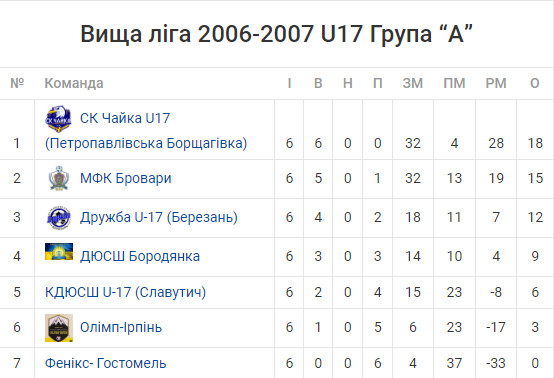 Юні вихованці тренера Костянтина Білінського прийшли на проміжний фініш другими. А переможцями першоколового циклу Чемпіонату Київщини серед 17-річних стали підопічні Едуарда Єропкіна з «Чайки» (Петропавлівська Борщагівка). Вони виграли всі шість календарних зустрічей з яскравим співвідношенням забитих і пропущених м’ячів 32:4. Ці цифри промовисто засвідчують, що саме «Чайка» виокремилася з-поміж учасників офіційних перегонів юнацьких команд особливою цілісністю командної гри, збалансованістю тактичних ланок.