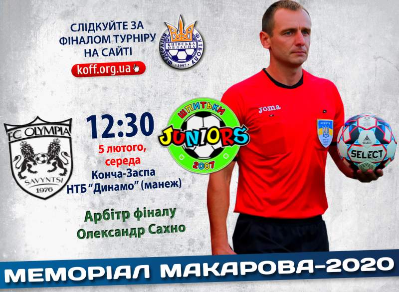 Фінальний поєдинок ювілейного, двадцять п’ятого за ліком підготовчого турніру з міжнародним статусом проведе арбітр Першої національної ліги Олександр Сахно. Він є вихованцем яготинського футболу, в аматорських змаганнях найвищого обласного рівня задіяний вже шостий рік поспіль. Два роки тому Сахно вже проводив останню зустріч Меморіалу Макарова — тоді він зафіксував перемогу ковалівського «Колоса» над чернігівської «Десною».