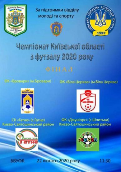 Як відомо, на вирішальній стадії чемпіонату Київщини виступлять аматорські команди футзалістів з Білої Церкви, Броварів, Гатного та Шпитьків. Фінальний етап пройде в Броварах.